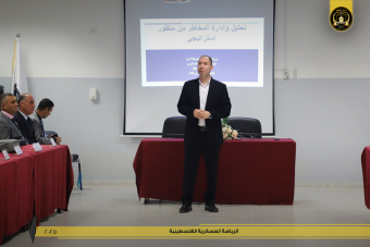 مدير الرياضة العسكرية الفلسطينية يقدم محاضرة نوعية في دورة كبار الضباط الـ 23 حول تحليل المخاطر والتهديدات