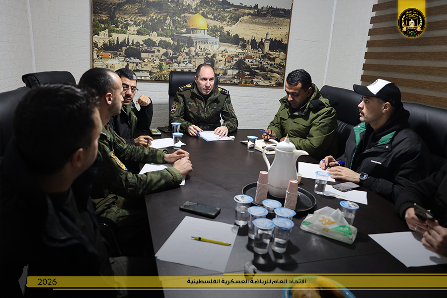 The Palestinian General Military Sports Federation held a coordination meeting with representatives of the security agencies, chaired by Colonel Dr. Maen Barakat, to discuss future sports activities. Barakat welcomed the attendees, emphasizing the importance of joint coordination and the support of the security establishment in developing military sports. During the meeting, it was agreed to implement the decisions of the International Military Sports Council (CISM) for 2026 and to set two key dates: the Elite Boxing Championship on February 15, 2026, and the commemoration of World Running Day on February 9, 2026. It was also agreed to hold a comprehensive planning meeting in April to finalize the annual agenda. The participants concluded by stressing the importance of continued cooperation to enhance the presence of Palestinian military sports locally and internationally.