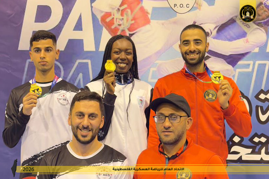 The Palestinian Military Sports Federation participated in the Palestine Taekwondo Championship held at Al-Istiqlal University, with 180 athletes competing. The military team secured three gold medals.